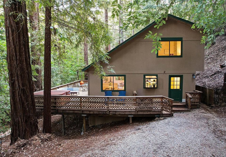 This beautiful 3 bedroom 2 bathroom home is the perfect place to call your own. Bright, spacious, and inviting you'll enjoy views from every room in this well-crafted property. The high ceilings will make you smile with their exposed beams and geometric lines that complete these incredible living spaces; not forgetting about those large windows that offer stunning light throughout! The living room will show off its features with the fireplace and skylights in the center of the home. Want to see more sights? Head to grab a snack in the large pantry to enjoy at the kitchen breakfast bar and take in the views from the garden window. This beautiful Ben Lomond home is a gem for those who love to entertain or relax in nature. The large deck and hot tub make it the perfect spot to enjoy your day, while you're only 6 minutes away from town with all its shops and restaurants, 8 Minutes away from Henry Cowell State Park and Santa Cruz beaches.