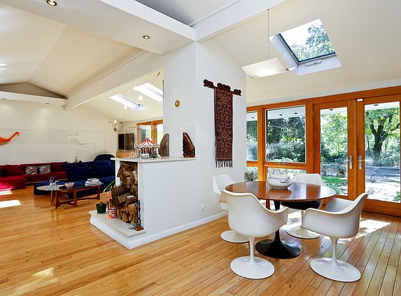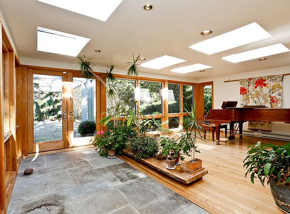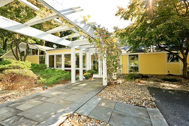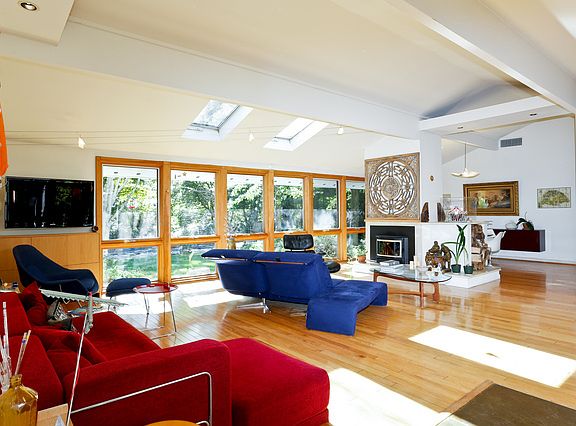 Meandering up the winding drive is just the beginning of a magical experience!At the top appears a mid century modern home with soaring ceilings,incredible natural light and euphoric space.The front entranceway greeting is not only serene but has an understated elegance with the use of natural materials both inside and out.At every turn,nature abounds with walls of glass and multiple skylights.All this set on 5 plus acres to guarantee privacy,on one of the most beautiful roads in Westchester.