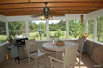 Country refuge and still only 5 miles from the center of the City of Wentzville. This home is located on 3 unincorporated level acres planted with 75+ trees offers an escape from it all. 12 years young this well maintained 1 ½ story home offers just under 2000 sq ft of living space with 3 bedrooms and a 36’ x 48’ insulated, heated concrete floored outbuilding with two 9’ doors for your business equipment or toys. The home features custom kitchen cabinets, Jenn-Aire downdraft gas cook top and electric stove, tile backsplash, stainless steel appliances, large breakfast room, screened in porch, hardwood floors, master suite, two oversize upper level bedrooms, zoned heating and cooling, water softener and osmosis filter, pellet stove in the living room and ceiling fans throughout. There is also wildlife galore at no extra charge! COOL: 14 SEER+