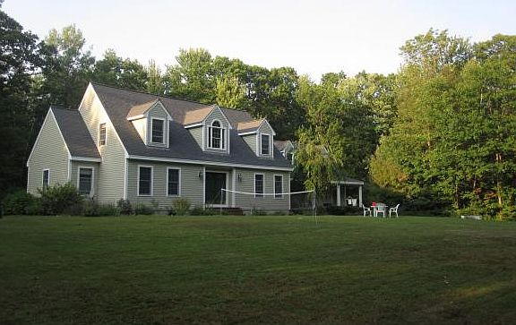 Elegant Custom Cape sits well back from the road in a private location with long town road frontage across from Cunningham Pond Town Beach and Boat Landing. Distinctive features include first floor master bedroom suite, farmers porch, custom kitchen, hardwood floors, large expansion area w/deck over attached garage. A Peterborough best buy!
