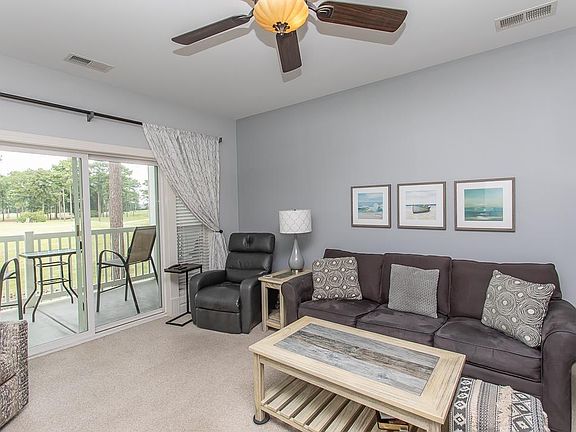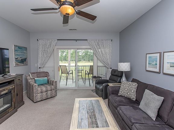 Relax, relax, relax!! This is a beautifully maintained residence with a view over the 18th green of the St. Andrews! Truly a golfers paradise, hang out on your back porch and watch the golfers putt in. The conveying furniture is in excellent condition and the decorating is done in a tasteful palette to allow for move in to be a breeze! An electric fireplace with interchangable flame colors creates a cozy setting. The foyer and kitchen floors are being replaced with new 12" x 30" tiles. Clean, berber carpet flows through the living room and bedrooms. The entire residence was painted a year and a half ago and the owners have taken great care of it. The setting is so peaceful! The Azaleas and Magnolias in the backyard give you a great show of colors all year round. The summer sunsets are a dream with your west facing view! There is an elevator in the building, an outdoor swimming pool, workout area, and charcoal grills all provided by the HOA. The property can be used as a primary residence, a second home, or rented out short term or long term for a property investment. You're close to residential beach access so you'll get the best of both worlds here in a turn-key residence!