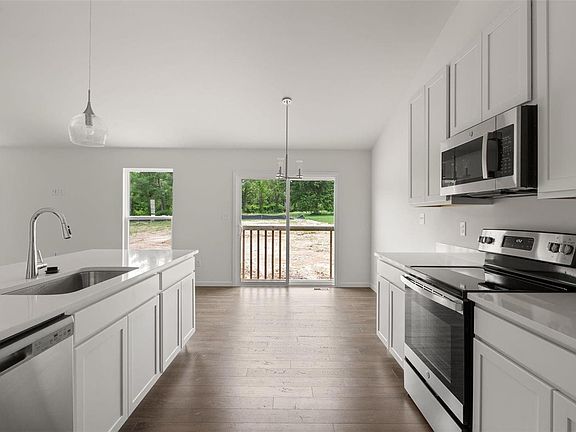 New McBride Aspen ranch home 3BR & 2BA ready this winter! Walkout homesite! In the main living areas, you’ll find vaulted ceilings, 6ft windows, & beautiful wood laminate flooring. The kitchen features painted white 42’’ tall kitchen cabinetry, quartz countertops, peninsula w/flush breakfast bar, & stainless steel GE appliances. Master suite features large window, ceiling fan, walk-in closet w/private bath. Two additional bedrooms with ceiling fan prewires & a full bath. Main floor laundry, coachlights at garage, & white two panel interior doors, ¾ bath rough in at LL. Amenities include a sports court, pavilion w/picnic tables, fire pit, pickle ball courts, & BBQ pits. Similar photos shown.