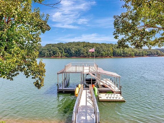 Lake Hartwell waterfront home with private guest house and new aluminum double deck dock in place on deep water! Built in 2022, this stunning home has many features including 2 kitchens, walk-in pantry, cast iron claw tub, custom built closets, snap lock metal roof, German engineered exterior doors & windows, and a covered porch plumbed for an outdoor kitchen. The private 1B/1B guest home has living room, kitchen, and laundry room. Below the guest house is additional space currently used as a private home gym. There is a two car main level attached garage as well as an oversized (1100sq') basement level garage. The new 36x30 aluminum max size double deck dock has composite flooring, boat lift, 2 jet ski lifts, and a 60' arched walkway. Convenient location near I-85 with easy access to Clemson, Greenville, and Atlanta.