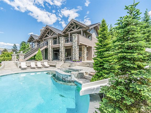 Incredible feat of craftsmanship. This TREMENDOUS Columbia River estate sits on 1.23 Acres and 110’ + of low bank sandy beach. Timber frame construction, a Northwest Masterpiece. Second Kitchen and rec. room leads you out to the custom flagstone patio and pool with spa-waterfall and waterslide. Impeccably landscaped. Boat slip in the community marina. Bordering 56 Acres of unbuildable PUD Waterfront for ultra-privacy. An immense Deck to soak up the sun on Summer days.