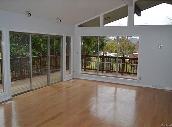 This 60's Split Foyer Ranch has fresh been freshly updated with new quartz countertops and real oak tongue-and-groove flooring. Light-filled cathedral ceiling, floor-to-ceiling stone fireplace with another stone fireplace in lower-level living room. Extensive crafted stonework in foundation and chimney. Lower level also has a bar, workshop room, office, den and another bedroom/bath/den. Redwood siding. Across courtyard there is an additional building (a former pool cabana). End of the road, back of the subdivision on a larger lot with beautiful views. Classic East Asheville neighborhood feel, yet just a couple of minutes to everything, and priced at $136 per sf, makes this a great value.