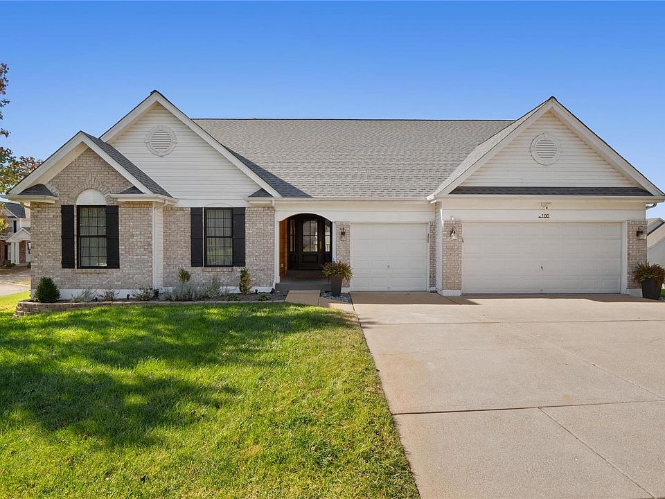 Welcome to 100 Driftwood Circle. Are you ready for a home that checks all the boxes? This stunning 4 bedroom, 3 bath is move in ready. This ranch situated on a cul-de-sac with a corner lot is a must see, completely updated with hardwoods throughout the main level, large family room with gas fireplace, built-ins. Huge eat-in kitchen with custom finishes, Quartz countertops, stainless steel appliances, and coffee bar. Main floor Laundry off the kitchen. Master Bedroom Suite with master bath, walk in closet and your own private deck. All bedroom closets are new from St. Louis Closet Company.  Finished walk out basement with bonus bedroom, playroom and large entertaining space for all your movie nights. The outdoor space features 2 decks and large fenced in yard. Irrigation System 2023. Roof 2020, HVAC 2022. Appliances are negotiable. Seckman SD. Showings start November 7th at 9am. Have to see this home in person, make your appointment today!