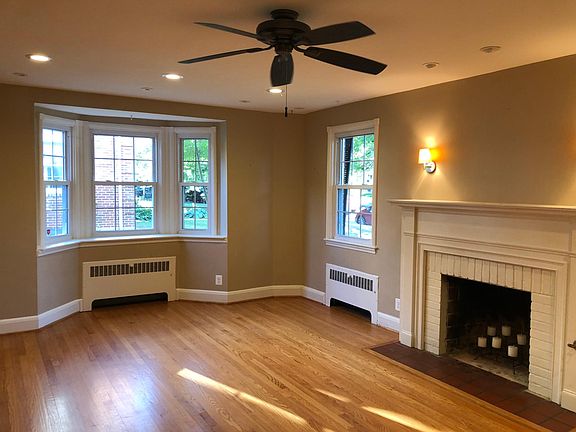 Rarely available 5 bedroom, 3 full & 1 half bath end of group in Rodgers Forge. You are greeted by a large center hall and gleaming wood floors. The large living room has a bay window, fireplace and a wall of built-ins. The dining room also has a bay window.Spacious master bedroom with attached bath. Club room with fireplace in the basement. Newer roof and windows. High Velocity CAC, 1 car garage.