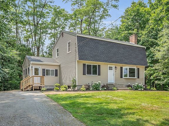 Welcome home to 100 Dunstable Road! This freshly painted, newer updated home is in a highly desirable location, just steps from Long Sought Pond, top rated schools, shopping and highway access. Main level has a sunlit vaulted ceiling family room, kitchen with newer stainless appliances and quartz countertops that looks into the dining room with a breakfast nook all with gleaming hardwood floors. Living room features a large bay window and fireplace. The first floor also features a full bath with tiled shower/ tub and bedroom with closet. Upstairs boasts a generously sized primary bedroom with two closets along with three more bedrooms all with new carpet. The full bathroom is a tiled shower with quartz countertop vanity. Basement is finished with a separate laundry room area as well as a huge bonus room for additional entertaining and walk-in storage. The large backyard leaves endless opportunities- bring your ideas! This home is surely one to see!
