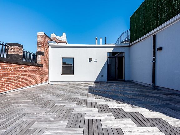 Amazing top floor two bedroom with huge private deck in historic schoolhouse conversion in north Greenpoint. Amenity rich building boasts elevator,roof deck, state of the art gym, game room, laundry, bike storage, game room and more! Unit is fully renovated with central air, stainless steel appliances, exposed brick, video intercom and a HUGE private deck with city and river views! Easy commute via the G train and Ferry.
