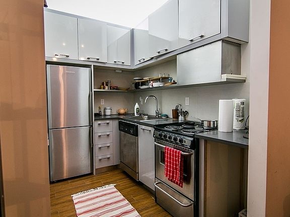 No Fee 1 Bed + office area and living room! Historic conversion in Greenpoint with awesome design touches in an amenity rich building featuring a roof with stunning views of Manhattan, full gym, laundry & so much more. The neighborhood is incredible close to innovative restaurants, boutiques, nightlife, and offering a fast easy commute to the city. Close to The Ferry @ India and G train @ Greenpoint Ave.
