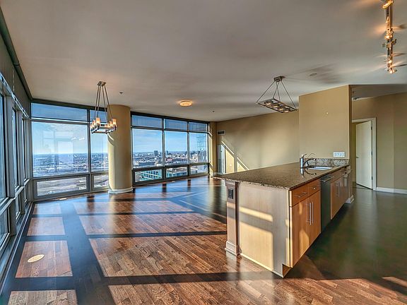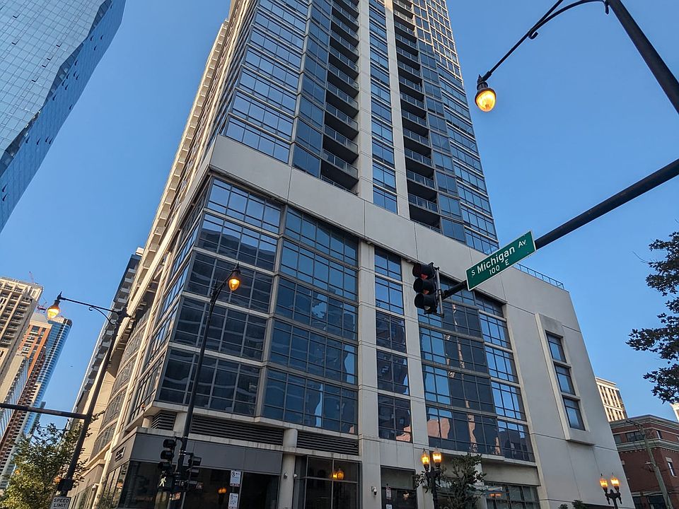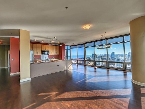 Amazing Top Floor 2 bedroom, 2 bath plus den. Floor to ceiling windows with East, South, and Western exposure. Private balcony with stunning city views. Kahrs Oak Mocha Hardwood floors throughout. King size primary bedroom with dual vanity en suite with standup glass shower. Full amenity South Loop building with 24 hour door staff, indoor pool, jacuzzi tub, fitness center, community room, dry clean services, secure document shredding. Assigned garage space with charging capability available for $250.00. $500 non-refundable move in fee. $100 non-refundable processing fee.