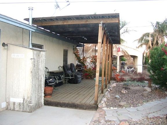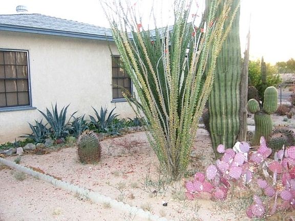 3 bd/1 ba, nice stucco home on corner fenced lot, Covered back patio, easy care desert landscaping and detached garage.
