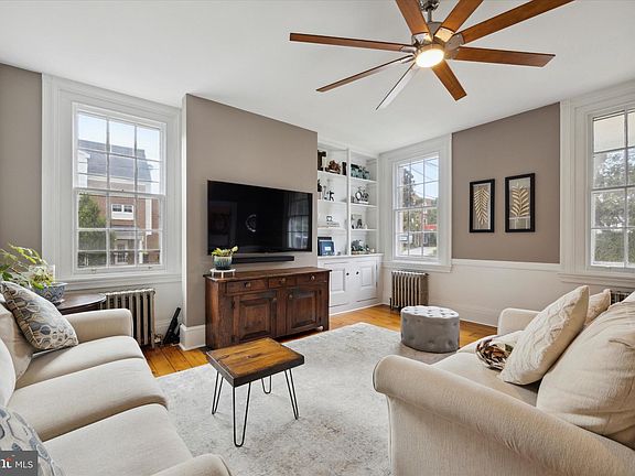 100 E Biddle Street is a charming 5 bedroom and 3 full bathroom home located only a few blocks from Marshall Square Park and the heart of West Chester. The home has been recently renovated which includes two full custom tiled bathrooms, a full kitchen update with new cabinetry, countertops, appliances and windows. The home has 3 bathrooms. The third floor is fully renovated with brushed nickel finishes, 60" vanity with marble countertop, 100% waterproof EV flooring, shaker style barn door. The Second floor bathroom has been updated to feature the original exposed brick, with granite countertop vanity, subway tiled shower, recessed lighting and ceramic tile flooring. A new laundry room was created, displaying a new window, recessed lighting, deep stainless sink, custom granite countertop, and waterproof EV flooring, as well as an update to the main living room. This corner home has wonderful bright natural light and beautiful original wide plank oak and pine hardwood floors throughout. The kitchen provides plenty of space including a sizable kitchen island, granite counter tops, stainless steel appliances, pendant lighting over the kitchen island, eat in kitchen, walk in pantry, matte black hardware and faucet, vented range hood and Bosch dishwasher. The living room offers an inviting space with neutral colors, customs built-in cabinetry, and charming cupboard doors (1800's) throughout. The home has five bedrooms but the owners currently have it set up as a three bedroom plus an office and an additional living media room. The primary bedroom is equipped with beautiful built-in cabinetry allowing for additional storage. Many outdoor spaces include a front porch, a large covered back deck, and a very spacious backyard fit for many opportunities to entertain. This updated home is perfect for someone looking for the charm of a West Chester townhome yet with the modern updates already completed."