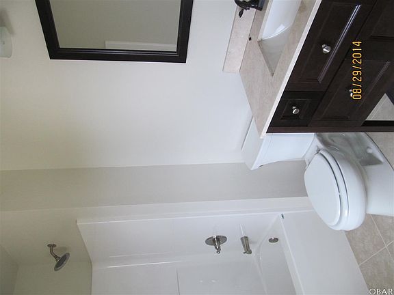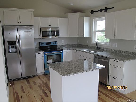 CASUAL ELEGANCE AT THE BEACH - Brand new home for your summer or year 'round comfort. 1331 square feet with three bedrooms, two full baths and all the extras: solid hickory wood flooring in living room, kitchen and hall, ceramic tile floors in baths and laundry closet. "Knock-down" walls and ceilings throughout. Carpet in bedrooms. Ceiling fans in each bedroom and living room, Martha Stewart cabinets, granite counter tops including kitchen island and bathroom vanities. West walls insulated with blown foam for sound insulation, all rooms and baths are insulated. Large utility room on ground level plus dry entry. Extras include: covered porch, enclosed outside shower, heavy vinyl siding, full concrete under house and double driveway. All stainless steel kitchen appliances including range/oven, dishwasher, microwave and smudge resistant refrigerator. Washing machine and clothes dryer included in hall laundry closet.