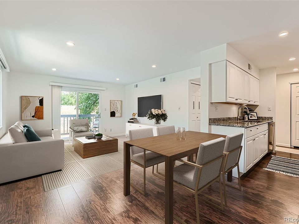 Welcome to Highline Meadows! This spacious, beautifully renovated condo is nestled against the Highline Canal with great access to the South Suburban Trail System. Move-in Ready. You'll feel right at Home with your luxury vinyl plank flooring, white cabinets, granite countertops, wide sinks, upgraded light fixtures, stainless steel appliances, balcony, central air, garage, pool, playground… Mountain Views, and much more! Great location - steps away from the Highline Canal Trail, a 72-mile-long trail surrounded by mature trees, and ideal for biking, walking, or riding. This community is just minutes from the Streets at SouthGlenn, where you can get coffee at Pete's, get dinner at several restaurants, get dessert at Indulge, or do your everyday shopping. Minutes to DTC for work or Chatfield Lake for relaxation with mass transit available around the corner. Come and have a look - Opportunity Knocks!