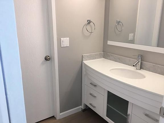 Condo -- Just-finished Remodel! 2 large, light-filled bedrooms 2 baths abundant closet space all-new flooring and carpet, countertops, windows, fresh paint, and more patio overlooking pool, clubhouse fountains covered parking spot and second dedicated space laundry next door secured complex close to downtown Mountain View and Google headquarters easy freeway and Stevens Creek Trail access Tenant responsible for electricity only, water and trash included in the rent
