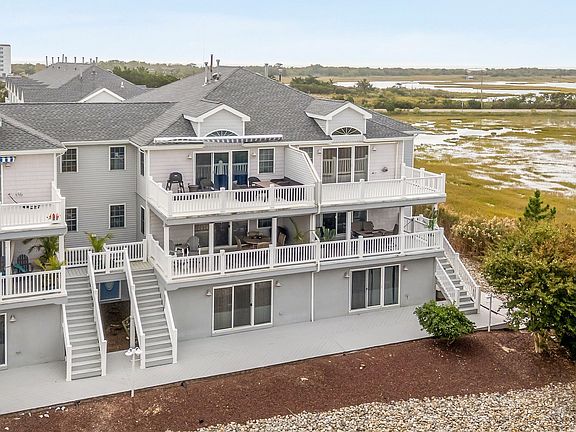 Welcome to Harbor Vista Condos at Diamond Beach, where privacy, comfort, and unobstructed sunset views come together in this stunning 3-bedroom, 3-bath end-unit townhouse. The versatile first floor offers a den or 4th bedroom with a fully renovated full bath and direct porch access. The second floor boasts an open-concept kitchen, dining, and living area with elevated ceilings. The kitchen was beautifully updated in 2023 with pendant lighting, a breakfast island, and modern finishes. From the living room, sliders open to a private deck—perfect for entertaining or simply enjoying breathtaking sunsets each night. Upstairs, discover three spacious bedrooms with full closets, including a primary suite with an ensuite, fully updated bath. All bathrooms throughout the home have been completely renovated. Enjoy year-round comfort with central air, gas heat, and turnkey convenience—sold fully furnished. Exterior amenities include a 2-cargarage, off-street parking, community pool, outdoor shower, and a strong, well-organized condo association. Unit is being sold fully furnished. Truly a must-see coastal retreat!