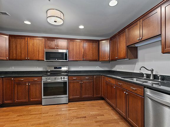 **Brand new fridge, range & microwave and freshly painted January 2025** (Pics do not reflect these updates) Fabulous condo located in the heart of downtown Barrington, walking distance to everything! This unit has two spacious bedrooms, two full baths, nine foot ceilings, and the location can't be beat. Large kitchen opens to the living and dining room and has granite counters, stainless appliances and an abundance of cabinetry. The primary bedroom includes a large walk-in closet, and en-suite bath. The secondary bedroom also has a walk-in closet. This condo has one of the largest balconies, perfect for lounging or grilling. Laundry located within the unit. The building features a secure-access key fob system and two elevators. One parking space in the heated garage is included in the rent; additional parking available for a fee. Walk to coffee, restaurants, outdoor dining and farmers market (Thursday's June-October), schools & playgrounds, Metra train (3min walk), grocery stores, and shops steps from your door. Owner pays trash. Lessee responsible for electric, water, cable, internet, phone (no gas)