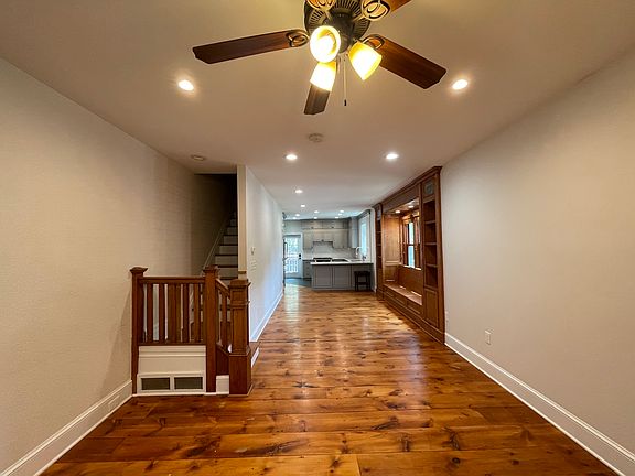 Welcome to this beautifully updated three-bedroom, two-bathroom apartment located in one of Collingswood's most desirable neighborhoods just a short walk to the shops, cafes, and restaurants of Haddon Avenue. On the main level, you'll find an open-concept layout with antique pine floors and radiant heated flooring throughout. The custom kitchen features quartzite countertops, a full-size refrigerator, a gas range and oven, a large sink with disposal, and abundant cabinetry for storage. The extended counter provides seating for up to four. Adjacent to the kitchen is a dining area with a built-in oak window bench offering hidden storage and space to accommodate a large table for up to eight guests. The living room is pre-wired for a mounted TV and offers a warm, inviting space for relaxation. The second floor includes two spacious bedrooms. The front bedroom features a walk-in closet and bay windows overlooking the yard. The rear bedroom has two large closets and excellent natural light. Both rooms are finished with wood flooring and radiant baseboard heating. The hall bathroom features heated marble floors, a double sink, a soaking tub, a separate walk-in shower with subway tile, and built-in drying and storage space. A washer and dryer are located just off the hallway for added convenience. The third-floor master suite includes a built-in king-size bed with integrated storage and a brand-new mattress. It also offers a walk-in closet, mahogany wood floors, and a private bathroom with a marble walk-in shower (dual shower heads, skylight), double vanity, and heated floors. Radiant baseboard heat and central air keep the space comfortable year-round. Additional highlights include an enclosed front porch ideal for a home office, seasonal lounge, or storage, a large basement, and a one-car garage. Off-street parking is available. Tenant pays all utilities, including water and sewer. No pets permitted. Renter is responsible for all utilities including water and sewer. Last month's rent due at signing. No smoking allowed. No pets allowed.
