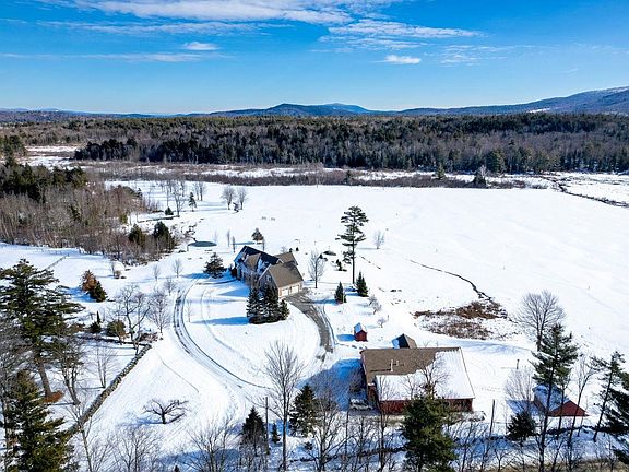 Now offered with all 229.9 acres at a lower price. This custom-built contemporary cape on is designed to take in the sweeping views of open meadows, woodlands, and the surrounding hills and is strategically located to enjoy the best recreation NH has to offer - two major ski areas, multiple lakes, and State Parks. Large windows capture the views, bringing in the natural light and creating a warm and inviting atmosphere. The open floor plan allows for a seamless flow between spaces. A bright sunroom anchored by a fieldstone wood burning fireplace is surrounded by windows on 3 sides. The main living room with a gas fireplace is open to a large formal dining room, the kitchen/dining area, and above a balcony overlooks the main floor. The well thought out kitchen has a large center island, a walk-in pantry with wine cooler and sink, a 6-burner Viking cook top with griddle, double Miele wall ovens, and Miele dishwasher. The primary suite overlooks the pond and includes a large bathroom with double vanities, walk-in shower, and jet tub, a laundry room, and two walk-in closets. Upstairs are 3 bedrooms, a full bath, two sitting areas and a large, finished bonus room with ½ bath accessed from the two-car garage. The walk-out lower level has a finished room and ½ bath. A versatile and well-designed barn complements the property with a large, heated area for equipment or vehicles, 5 stalls, and a 1-bedroom apartment above. A post & beam barn for additional equipment or sugar house.