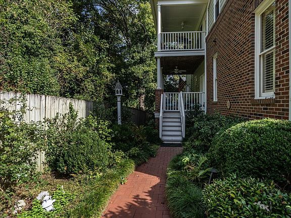 Elegant, well-located condo features an open plan with high ceilings and an abundance of light - corner unit with gracious entry/large formals + family room - updated kitchen with breakfast nook has French doors to covered side porch with stairs to adjacent parking (only one that has this second access) - MBR suite with double vanity/soaking tub + separate shower/WIC - hardwoods floors - 9' ceilings - plantation shutters - two assigned spaces (one is covered) plus plenty of visitor parking - secured access with lobby/elevator - fun, caring neighbors!