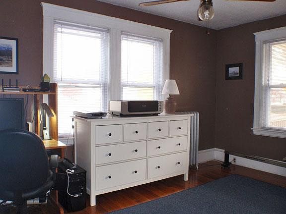 This beautifully kept apartment is located on the second and third floor of a 2-family dwelling off of Main street, close to transportation and shopping and bike path in Watertown. It consists of 2 bedrooms, office, living room, eat-in-kitchen, closed front and open back porch and 1 bathroom. Available July 1st. Here are some features of the apartment: New windows throughout Hardwood floors throughout Gas stove Oil heat Tiled bathroom Dishwasher and refrigerator in the kitchen Separate storage area in the basement 2 car parking on the driveway Washer and Dryer in the basement Please, no pets and no smokers. cold water included in the rent