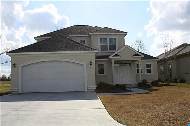 New construction home on a lake lot located in The Bluffs on the Waterway. This premier gated community features boat/rv storage; boat dock; clubhouse; pool; tennis courts and easy access to the beach, shopping, and schools. Master suite on the main level with a privacy door to living area features large walk-in closet; garden tub; and large walk-in tile shower. Soaring ceilings in great room with a fireplace. Kitchen bar, nook, and pantry. 3 bedrooms/2 baths upstairs. Enjoy evenings on the covered patio relaxing.