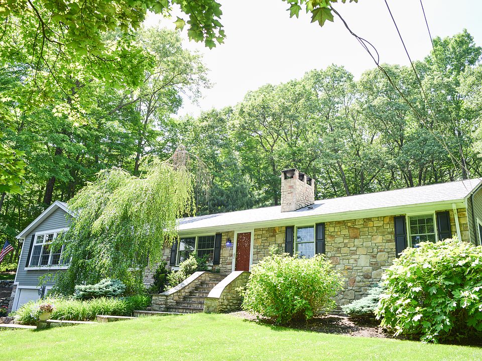 Beautiful well cared for, move in condition, oversized ranch with 2400+ square feet of living space! New roof 2022, nice bright country kitchen with oak cabinetry, stainless steel appliances, and a slider leading to a spacious outdoor deck. Open floor plan with dining room, family room with 3 stone fireplaces, three large bedrooms, two- and one-half bathrooms, and hardwood floors throughout. Additional living space on lower level. Attached four car tandem garage with workshop area. Heat is oil with central air conditioning, generator transfer switch, public water, and public sewer. Professionally landscaped grounds with lots of parking. This Gem won't last so schedule ASAP!