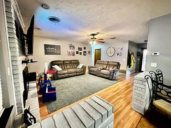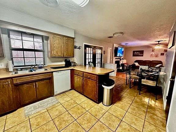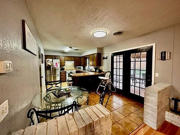 This is a very nice brick home located in Western Hills Addition in Weatherford. This home features 3 bedrooms, 2 bathrooms, great open floor plan with large living area, kitchen and dining. The living area has a newly painted gas log fireplace, dining leads out to the back covered patio through the French doors and the kitchen has a great breakfast bar and nice large pantry. The backyard has a nice in ground storm shelter installed in 2014 it also has an 11X16 storage building and privacy fence. This home sits on a large corner lot.