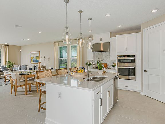Ready Now! The Magdalen Model Home in Osprey Cove is a spacious 3 bedroom, 2.5 bath home boasting nearly 2,500 square feet. At the heart of the home is an open-concept layout perfect for entertaining, with a kitchen overlooking the dining area and gathering room. Over-sized sliding glass doors open to a covered lanai. The primary suite is a spacious retreat with a spa-like bath including a large shower, walk-in closet and private commode. The two roomy secondary bedrooms feature walk-in closets and share a bathroom. Structural options include: side entry garage, 8' interior doors, pocket sliding glass door, gourmet kitchen, pre-plumb for future outdoor kitchen, large owner's shower, island knee wall cabinets, and study. MLS#10149538