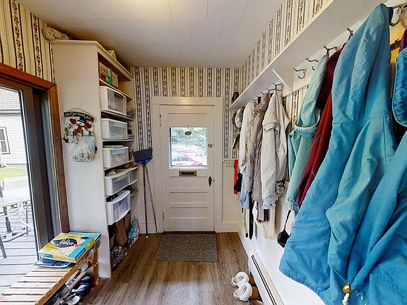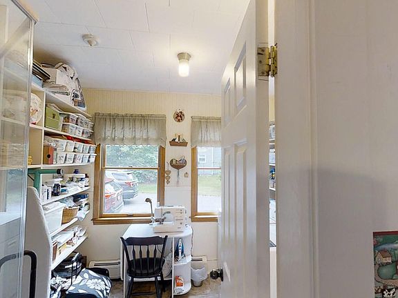 In-town 3-4 bedroom home for sale in Lincoln Maine. From the moment you walk into this home you get the feeling that there is a place for everything and everything is in its place. The entry/mud room is lined with hooks, cupboards and cubbies so all the season's coats, hats, gloves and footwear have a place as well as backpacks or briefcases. Step into the kitchen and you feel the comfort and nostalgia of times past. The eat-in kitchen features a nice sized eating area overlooking the spacious back yard as well as a center island for additional workspace that also houses the dishwasher. The tall birch cabinets have their original hardware and are in pristine condition. The Congoleum floor speaks volumes regarding the care and thought put into each improvement this homeowner has undertaken in the years of their ownership. Off the kitchen is the first floor full bath/laundry room that is also utilized as a sewing room. Here again, the storage shelves and cupboards make organizing a breeze. The formal dining room and living room both feature great original woodwork as well as beautifully maintained hardwood floors. The living room also features a large brick fireplace and built-in cupboards and book shelves adding to its homey feel. The first floor is completed by a front glassed-in porch that affords plenty of sunshine year round. The second floor of the home is the location of 3 nice sized bedrooms with closets as well as a fourth nursery/office space and the second full bath. The landing gives way to all of these rooms and also houses both a large linen closet and a deep storage closet – perfect for suitcases or seasonal clothing. The basement of the home is set up for more organized storage. There is a ''root cellar'' type room separate from the main basement that is lined with shelves for canned goods and other food storage and features an upright freezer. The main basement has more shelving for larger totes and seasonal storage.