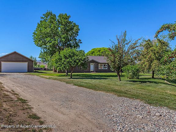 A slice of country right on the edge of town.  Sitting on 2 flat, irrigated, fenced acres, this spacious ranch style home is just what you are looking for. The metal roof was installed this year and the beautiful wood flooring is just a couple of years old.  You can have up to two horses and some farm animals. As well as the oversized detached 2 car garage there are additional storage sheds.