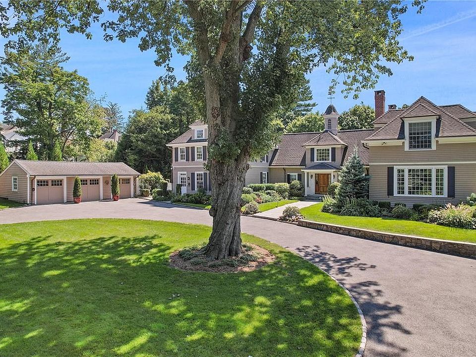 This exquisite one-of-a-kind home underwent a meticulous addition and renovation in 2017, elevating it to a level of sophistication that seamlessly combines history and modernity. Nestled in a picturesque neighborhood near Rye's quaint downtown and train, this residence is set on a sprawling and private 1.2 acres, providing an unparalleled sense of tranquility. As you approach the property, a long circular driveway and mature trees greet you, exuding character and charm. Inside the home, in the East wing you will find a Kitchens by DEANE gourmet kitchen with an oversized island, a bank of windows with views of the patio, two sinks, a Wolf range, steam and gas ovens, and porcelain radiant heated floors. The kitchen opens up to the family room, where a rare and stunning steel-framed glass wall ushers in natural light and offers a captivating connection between the rooms. Within the family room, you'll find built-in cabinetry, a gas fireplace, and a striking custom spiral staircase leading to the upstairs. The family room also leads to the powder room, office, and mudroom with built in crates for your furry friends. This whole area (first floor East wing) has radiant heated floors. On the adjacent side of the kitchen is the dining room, bathed in light, featuring sliding doors that lead to the back patio. The West wing of the first floor presents a private study with a wood-burning fireplace, a guest suite with a full bathroom, and an elegant, large living room with soaring ceilings and oversized windows that frame captivating views of the property. A second wood-burning fireplace adds warmth and character to this inviting space. The second floor is equally impressive, with a secondary staircase illuminated by a beautiful stained glass window. It leads to the primary suite with two walk-in closets, a wood-burning fireplace, and a primary bathroom featuring a private water closet, a steam shower, soaking tub, radiant heated floor, sky lights, dramatic vaulted ceiling and gorgeous chandelier. Just down the hall, two bedrooms share a stylish Porcelanosa bathroom that was renovated in 2021, and another bedroom with an ensuite bath that was part of the 2017 renovation. Additional highlights from the renovation include the second floor laundry room, another full bath, a TV/hangout room, and a dedicated yoga room. There is also a 3 car garage, great wrap around patio for entertaining and sprawling yard for play. All this just minutes away from the train station, downtown shopping, renowned restaurants, and The Rye Country Day School. Whole Foods and the popular Rye Ridge Shopping Center are conveniently located within a mile. Move right in and savor all that Rye and this exceptional home have to offer. It's a residence that seamlessly blends history, sophistication, and modern luxury. Additional Information: Amenities:Steam Shower,ParkingFeatures:3 Car Detached,