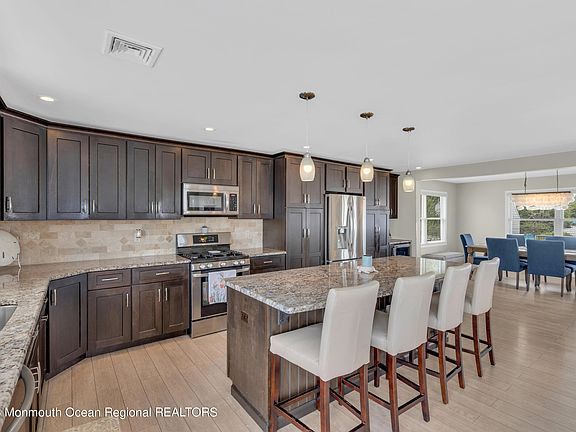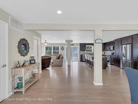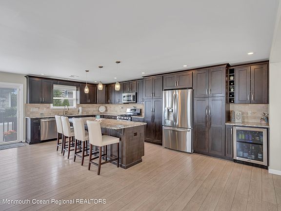 Rare opportunity featuring stunning water views! You will love this sought after river front location with an amazing summer breeze overlooking Shark River. This spacious 3 bedroom 2 bath home features desirable open concept with large kitchen, dining, living space. Oversized kitchen island perfect for entertaining guests all year round. Second floor balcony offers that perfect place to enjoy the sunrise over the water.This well maintained home has had many upgrades for your enjoyment, rinse off in your outdoor shower after a fun day on the water. Solar Panels paid in full + owned outright.Steps away from the new Shark River Marina + Yacht Club, close to Asbury Park, Belmar, amazing local restaurants, NYC transportation + more.