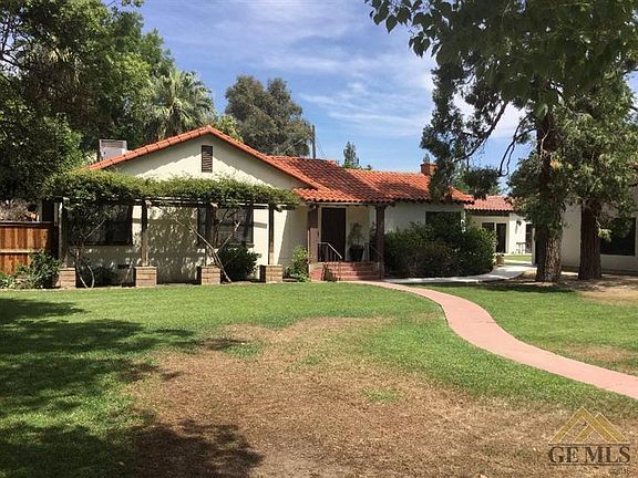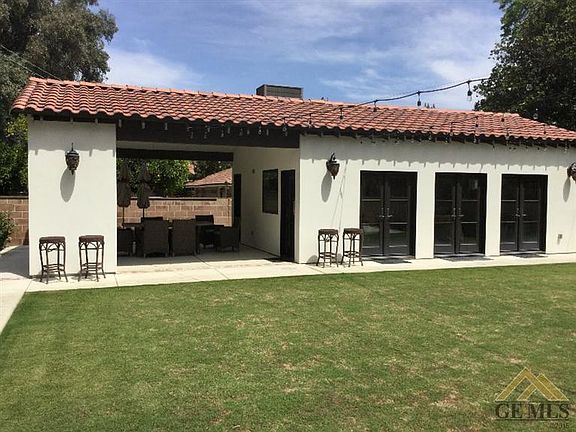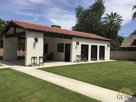 Located in one of Bakersfield's Best loved neighborhoods, Old Stockdale! Boasting with ambience of old and new in this charming Spanish style home with approx. 2,000 sqft, 3 generous sized bedrooms, 2 bathrooms, laundry room with service porch, and spacious family room with French doors leading to a secluded all brick courtyard makes a relaxing open air patio. Hardwood floors throughout, coved ceilings, large kitchen with newer appliances and tile counters. Recently built is the gorgeous Casitas with 450 sqft., featuring a service kitchen with dishwasher, full refrigerator, full bath and French doors to a large grassy area... Perfect for a pool. Wait until you see the newer 1,250 sqft. 3 car garage with bonus workspace and utility sink. Large covered patio off garage and Casitas. Stucco wall enhances front yard with beautiful treed landscaping. This home is perfect for entertaining.