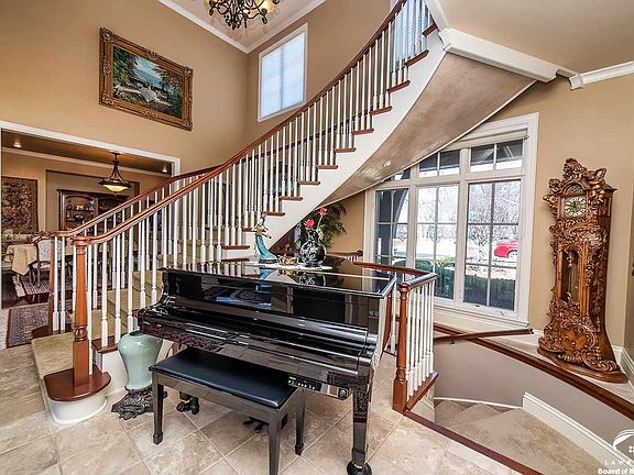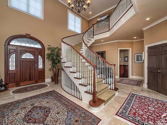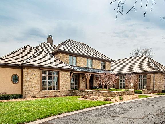 Absolutely incredible custom home in prestigious Fall Creek Farms. Breathtaking entry features mahogany spiral staircase once showcased on cover of KC Architectural Digest. Gourmet kitchen is open to the hearth room & spacious kitchen dining room. Main level master suite w/ huge walk-in closet. Expansive family room w/ full kitchen bar. Five fireplaces, formal dining room, exercise room, office/library w/ generous built-ins. Designed for entertaining with a fabulous backyard pool area & outdoor fireplace.