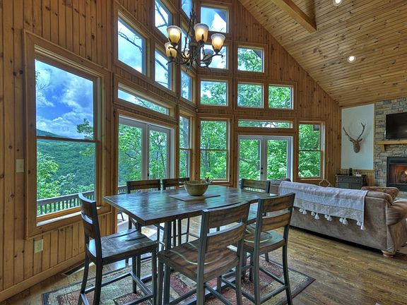 Available to show July 19th 11-3:00 and Aug 1st & 2nd. This is an immaculate impeccable mountain home that will exceed your dreams! Gorgeous in every way from the minute you walk in and are greeted by the openness, spectacular views, cathedral ceiling, stone fireplace, beautiful wood floors, and gourmet stainless kitchen... Each level offers a nice sized bedroom and full bath with tile floors and granite counters. The master located on the upper level offers wonderful space and an incredible master bath with walk-in shower not to mention the oversized loft & study to enjoy serenity with the views of this gorgeous home. The open terrace level offers a nice wet bar, spacious living area for extra company and a private deck & hot tub. Lots of great outdoor living areas including a detached covered porch with a beautiful fireplace & seating area. A wonderful deck surrounds the entire mountain facing back with views from almost every room in the home. Great rental history too!