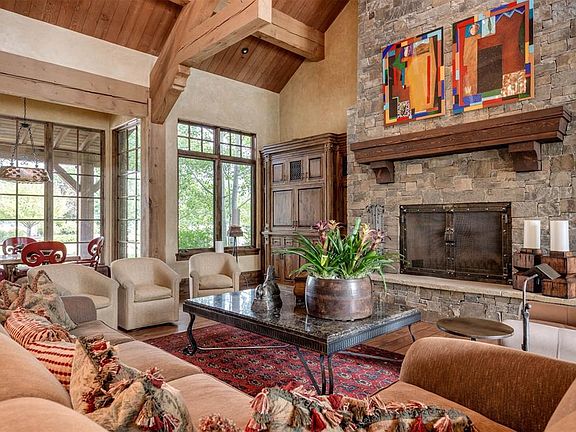 Beautifully designed by Locati, built by the premier builder SBC, this stunning home has a premier location on the banks of the East Gallatin River. The great room features soaring vaulted ceilings accented with rustic beam work, and a floor to ceiling stacked rock fireplace will take your breath away. This space flows seamlessly into the kitchen and dining room boasting custom cabinets and high end appliances as expected in such a quality home. All of this pours out into outdoor living spaces you can brag about, fireplace, seating area, built in BBQ, Swimming Pool, Golf range with multiple tees, and water falls are all features in this backyard built for summer. The home has a split floor plan with an executive office and elegant master at one end containing all the luxuries expected. The remaining bedroom on-suites are at the opposite side of the home. All of this is topped with a theater room for entertaining, special kids tunnel, and 4 stall garage to store your remaining toys.