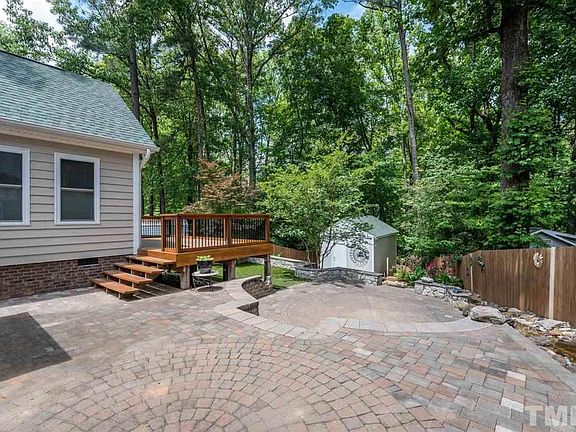 MUST SEE in the heart of Cary! Cape Cod sitting on beautiful corner lot with rocking chair front porch. Come inside to a 1st Floor Master, cozy den w/fireplace, recently (2014) renovated kitchen w/All SS appliances, incredible cabinets and copious counter space. Huge family room added (2014) w/vaulted ceiling & gas fireplace. 2 spacious BR upstairs w/storage. Spacious Deck overlooks Multi Tiered, Low Maint., Landscaped Paradise: 2-Stone patios, 6' Privacy Fence, Water feature w/access to Greenway.