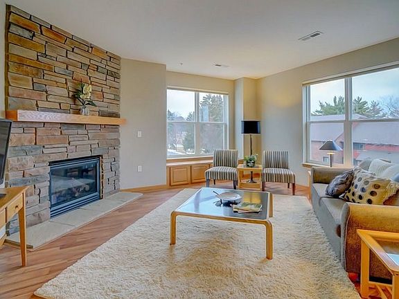 Gorgeous 2 bedroom+den bright and sunny corner/end condo in popular Monona Woodlands. Amazing location and walkable to shopping, restaurants and nature center. Owner???s suite with attached bath and custom walk-in closet with Calif Closet system. Lots of upgrades incl: laminate hardwoods in living/dining/kitchen/den, solid surface tops, new stove in 2016, all new interior paint and new carpeting. Spacious great room with gas fireplace and screened porch. Beautiful foyer AND laundry/mudroom. 2 car underground parking spaces, storage unit and secure elevator access.