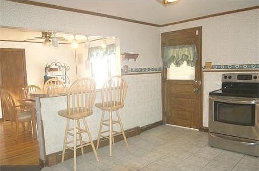 NEW driveway being installed. House is BIGGER than it looks from exterior. 4BR/2BA w/1 Car Det. Gar. w/newer door. Young Roof (approx 2003). 1st Flr: Lg LR w/Hdwds. Bright DR w/Hdwds. Fully Applianced (Stainless Steel) Kit. w/C-Tile & BFast Bar between Kit & DR. Enclosed Porch off Kit. 2 Bedrooms w/Hdwds. Full Bath. 2nd Flr: 2 Large Bedrooms w/carpet and built-ins. Lots of Closets. Bsmt has finsihed Full BA w/CTile, Jet Tub & Ldry Area.Town water & Town Sewer. NOT a shortsale/foreclosure.