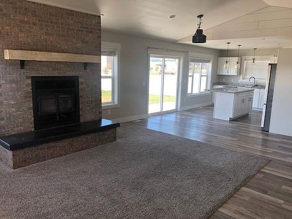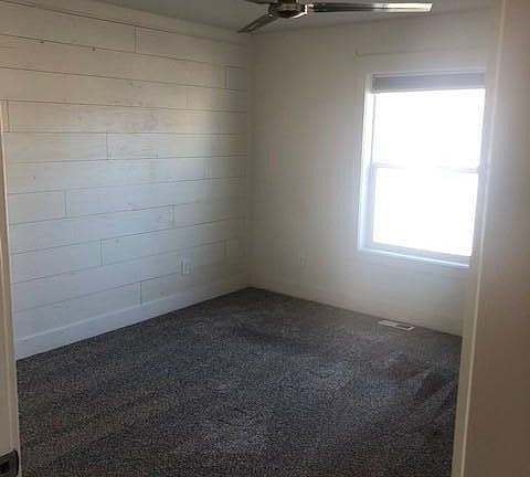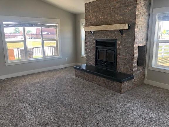 - Description: Carpet/LVT flooring, ceiling fan, wood fireplace