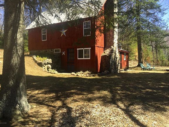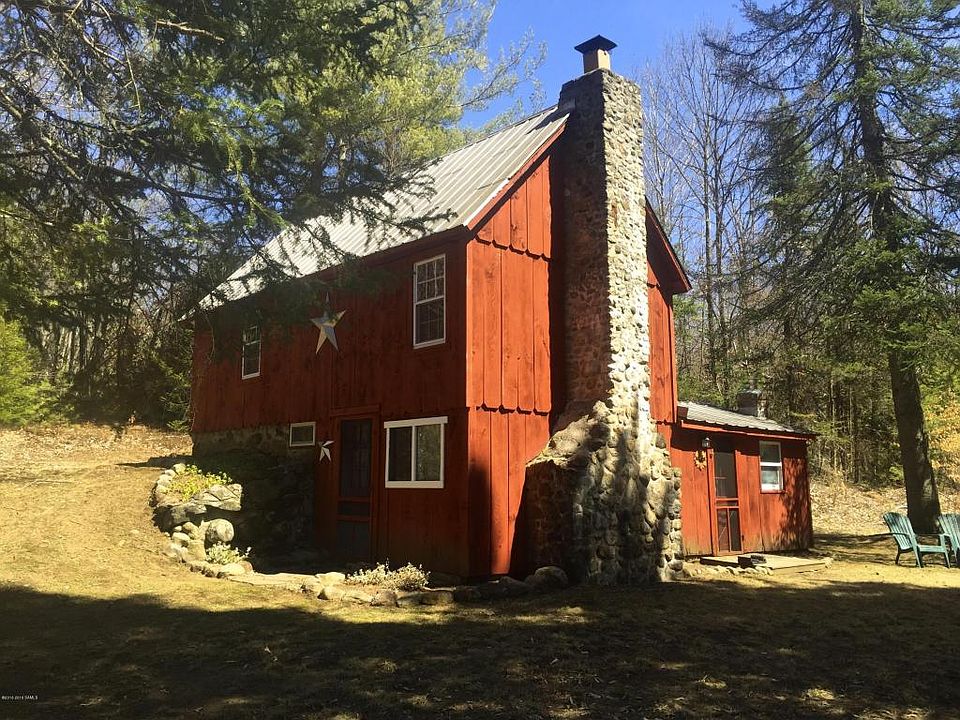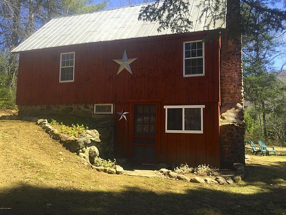 Over 50 gorgeous acres nestled in the Adirondack mountains with a quaint, newly renovated house. You get a little of everything with this property; a pond, a stream, cleared land, wooded land, mountain views, trails for hiking/ATV/snowmobiles etc., and a creek across the street-all located on a private dead end road. 2 bed, 1 full bath house has original stone walls inside, and a beautiful stone fireplace. Spiral staircase leads up to another ''living room'' area with great tongue&groove pine walls, master bed, full bath, and a cute little loft that can sleep a few guests! Current owners have stayed through the winter. Only 12 m. to I87.