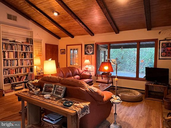 A hidden gem nestled in a peaceful grove of walnut trees, sets the scene for a quiet, relaxing life. This well maintained 2 Br, 1 Bath ranch home offers easy maintenance, privacy and just minutes from I-81 and shopping. Features open floorplan with vaulted ceilings in the living room, dining area and kitchen. The whole house fan is perfect for these fall evenings. If it gets too warm, the central air system will help. In the winter, enjoy a fire in the living room by the fireplace. Or keep the home warm with the woodstove in the basement. The basement provides opportunity to adding living space to the home by finishing the basement. Features woodstove, laundry and walkout level to rear yard. This home is situated in the center of a 3.75 acre wooded lot and convenient to everything. Seller is related to Listing agent.