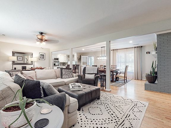 Picture-perfect, renovated all brick home situated on a beautiful, park-like lot! Home lovingly maintained & it shows! Real hardwood flooring in the upstairs living areas & bdrms, all new lighting & neutral paint throughout. Kitchen custom cabinetry w/ glass door accents, granite countertops, gas cooktop, stainless steel appliances. Off the kitchen is a spacious utility room, pantry and a 1/2 bath. You’ll love the wide open floor plan of the living areas with a cozy sunroom! Master has a walk-in closet & features an updated bath. Basement includes acid stain concrete, a gorgeous office area featuring a built-in desk and bookshelves w/ another living area & a fireplace. There is also room for another guest bdrm & a HUGE walk-in closet. Come see this move-in ready home!