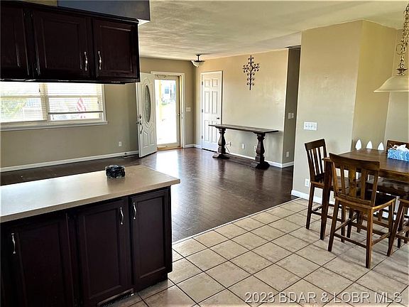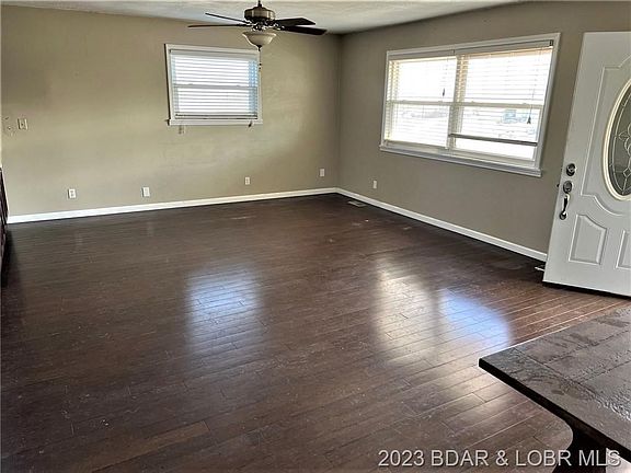 Convenient Prime Location just 1 block off Hwy. O & Hwy. 5 in center of Laurie with corner Lot. Nicely landscaped, Covered front deck w/swing, just up from lg. parking area or can enter on lower level next to attached dbl. garage. Enter home to open floor plan of living area, kitchen/dining area, 2 bdrms. and bath. Kitchen glass tiled backsplash and nice brkfst bar. Dining area includes stairs to lower level and slider to back covered deck. Lower Level has tiled flooring in Family Room w/door to front parking and door to attached garage. Lower Level bdrm. plus lg. office or could be 4th bdrm. (no window) with Laundry off office and door to full lower level bath. Nice Det. Storage bldg. w/sm garage door for riding mower. Stairs to side yard along Hibdon Rd road frontage between home and storage bldg. Hot Tub enclosure just outside of Garage back walkout door (seller never used hot tub). City water/sewer & all Laurie stores, churches, service stations, bowling center, nearby