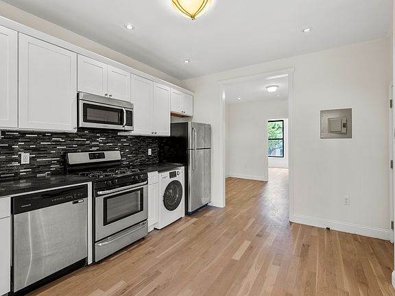 Welcome to 100 Franklin Street, a 2-bedroom, 1-bathroom floor-through unit in a beautifully renovated 1800s townhouse. This apartment is ideally situated along the highly sought-after Franklin Street Corridor and surrounded by some of the neighborhood's best restaurants and shops. The home features hardwood floors, abundant natural light, and high ceilings throughout. The open-concept kitchen offers ample space for dining, along with new stainless steel appliances and an in-unit washer and dryer. Both bedrooms are generously sized and include large closets. Ideally situated adjacent to the Greenpoint Historic District and steps from the area's top cafes, restaurants, and retail. Only a 5 minute walk to the Greenpoint Avenue G station and a 10 minute walk to the Greenpoint Ferry stop. No broker fee. $20 application fee per applicant. Most pets welcome. Landlord pays heating costs .