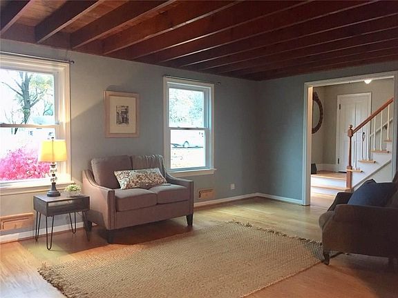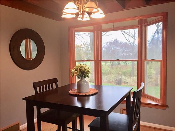 Wonderful Cape! Great curb appeal. 4 bedrooms, 1.5 baths. Beautiful beamed ceiling in living room. Wood burning fireplace. Living Dining room combo. Loads of refinished hard wood floors. Eat in kitchen. Wonderful new shower in upstairs bath. Tear off roof 2007. New furnace 2008. New windows. Refrigerator, electric range, dishwasher, washer and dryer included. Beautiful enclosed porch with stone floor. You will love this very convenient location with a private lot that backs to Nazareth College. Seller will not accept escalation clauses. Easy to show.