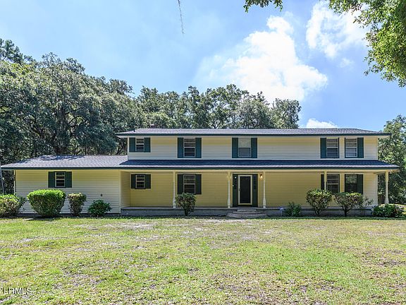 This is the one you've been waiting for! Come make your Lowcountry dreams come true with this newly updated home with over 3,000SF of living space on one acre of land covered in mature live oaks. Large foyer leads to library, living room and kitchen. Expansive eat-in kitchen connects to formal dining room and family room with fireplace, all overlooking tranquil outdoor space. First floor full bathroom with two big closets. All four bedrooms have ample space for king or multiple beds. Primary bedroom has huge walk-in closet room with window and private bathroom suite. Store cars or toys in double car garage or one of two sheds. No HOA. No covenants. Ten minutes to Hunting Island State Park beach. Fifteen minutes to downtown Beaufort.