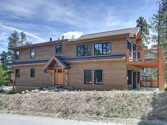Just a short walk to Frisco's Main Street, this mountain modern designed home features 4 bedrooms (2 master suites) + lock-off studio, and 5 bathrooms. Impressively appointed with hardwood floors, marble kitchen counters, Carrara marble bathrooms, a living area on each level, sunny south-facing deck and patio with sunset views, 2 stone gas fireplaces, a private 6-person hot tub and 2-car garage. Only minutes to shopping, dining, hiking and biking trails, this recently built (2015) home offers plenty of storage and mountain views, making this a property not to miss.